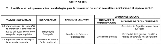 2. Acción general: Identificación e implementación de estrategias para la prevención del acoso sexual hacia ciclistas en el espacio público.