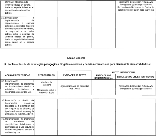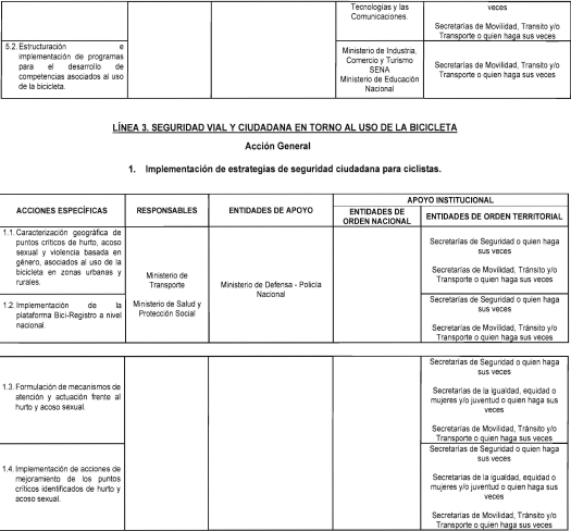 3. Promover la resignificación del espacio público y la creación de entornos seguros para el uso de la bicicleta, a partir de la implementación de acciones multisectoriales articuladas a favor de la seguridad vial y la seguridad ciudadana que permitan la prevención y atención de siniestros viales, situaciones de acoso sexual y violencia basada en género.