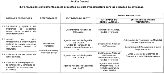2. Acción general: Formulación e implementación de proyectos de cicloinfraestructura.