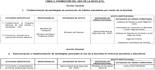 2. Impulsar estrategias de promoción, transformación y posicionamiento cultural en torno al uso de la bicicleta de forma segura, que faciliten el desarrollo de hábitos y estilos de vida saludables en entornos educativos, laborales, comunitarios, además de, incentivar el turismo sostenible en bicicleta.