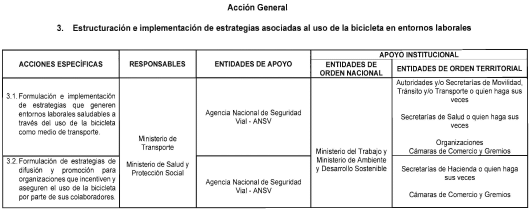 3. Acción general: Estructuración e implementación de estrategias asociadas al uso de la bicicleta en entornos laborales.