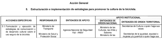 5. Acción general: Estructuración e implementación de estrategias para promover la cultura de la bicicleta.