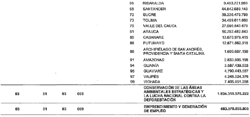 3. El 20% del mayor recaudo destinado para la conservación de las áreas ambientales estratégicas, y la lucha nacional contra la deforestación, asciende a un billón novecientos treinta y cuatro mil trescientos quince millones quinientos setenta y cinco mil doscientos veintiún pesos con noventa y dos centavos moneda legal ($1.934.315.575.221,92).