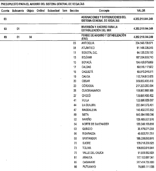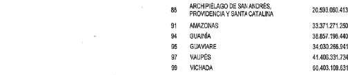 La distribución informada por el Departamento Nacional de Planeación en el oficio citado es la siguiente: