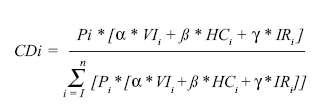La metodología toma los indicadores NBI e IR y estima un único indicador para cada departamento, que se obtiene ponderando los NBI e IR por su incidencia a nivel nacional. Este coeficiente multiplica la población departamental del área rural, obteniendo la población afectada de cada departamento. La relación entre la población afectada de cada departamento sobre el total de la población afectada, produce el coeficiente de distribución regional: