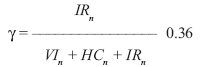 VIn, HCn y IRn: Promedio nacional rural de los NBl de vivienda inadecuada y hacinamiento crítico e índice de ruralidad, respectivamente. Cuando los indicadores del departamento no permiten obtener un coeficiente superior al 1%, se establecerá una participación para dichos departamentos del 1.33%.