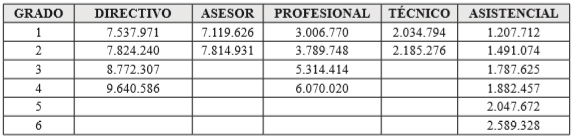 ARTÍCULO 1o. ASIGNACIONES BÁSICAS. <Decreto derogado por el artículo 18 del Decreto 305 de 2020> A partir del 1 de enero de 2019, se fijan las siguientes escalas de asignación básica mensual para los empleos de la Auditoría General de la República: