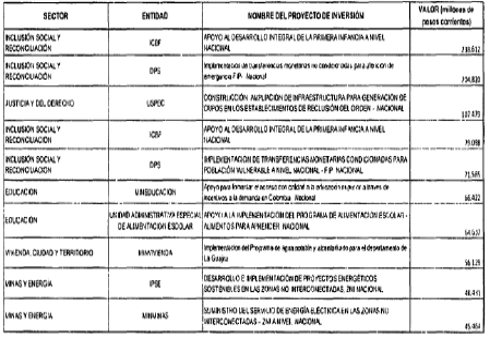 Que, para el 2022, los principales proyectos de inversión a través de los cuales se realizaron inversiones en el departamento de La Guajira y que no fueron suficientes para superar la crisis, fueron los siguientes: