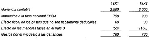 Gastos por el impuesto a las ganancias