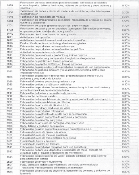 <Tabla modificada por el artículo 1 del Decreto 14 de 2014. Consultar nueva tabla directamente en el Decreto 14 de 2014.