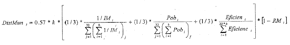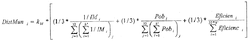 · kM es el monto a distribuir que resulta de los descuentos hechos en el PASO 1 de la asignación a municipios.