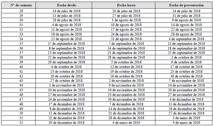 | Mes de julio año 2018 hasta el día | Mes de agosto año 2018 hasta el día | Mes de septiembre año 2018 hasta el día |