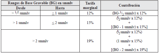 ARTÍCULO 16. TARIFA DE LA CONTRIBUCIÓN SABES PARA LOS BENEFICIARIOS ACTIVOS. La tarifa de la Contribución Sabes, en el caso de los Beneficiarios Activos, se determinará en función de la base gravable, como se establece en la siguiente tabla: