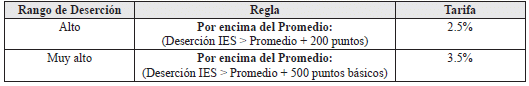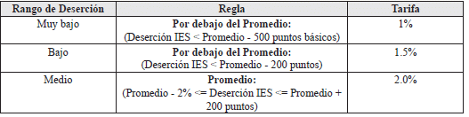 ARTÍCULO 27. TARIFA DE LA CONTRIBUCIÓN SABES PARA LAS IES. La tarifa de la Contribución Sabes se determinará en función de los índices de deserción de cada IES, así: