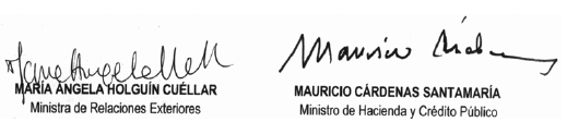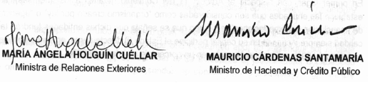 Presentado al honorable Congreso de la República por la Ministra de Relaciones Exteriores y el Ministro de Hacienda y Crédito Público.