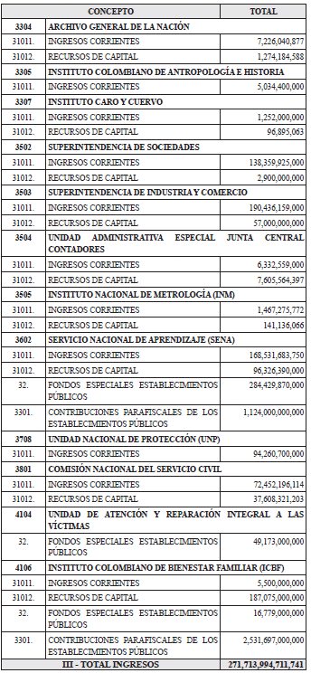 RENTAS DEL PRESUPUESTO GENERAL DE LA NACIÓN