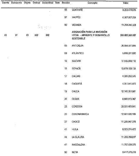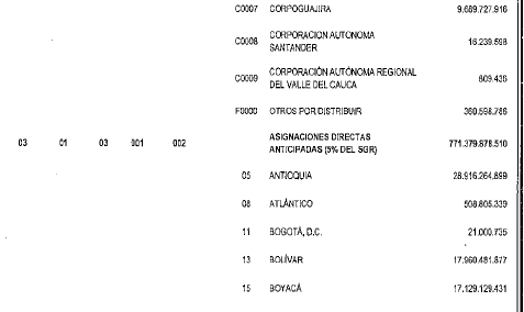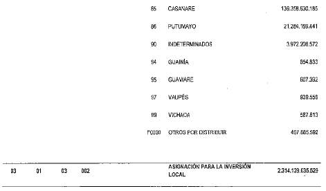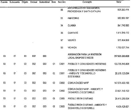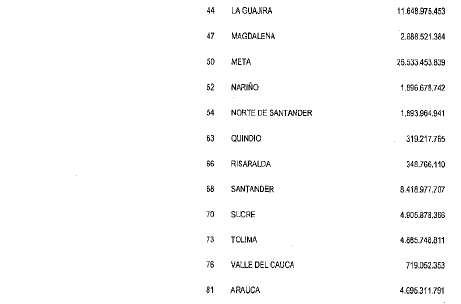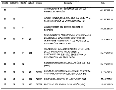 PRESUPUESTO DESTINADO A LA INVERSION DEL SISTEMA GENERAL DE REGALIAS.