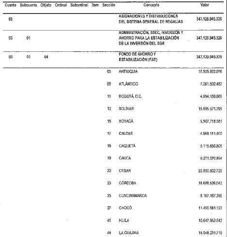 PRESUPUESTO DESTINADO AL AHORRO DEL SISTEMA GENERAL DE REGALÍAS.