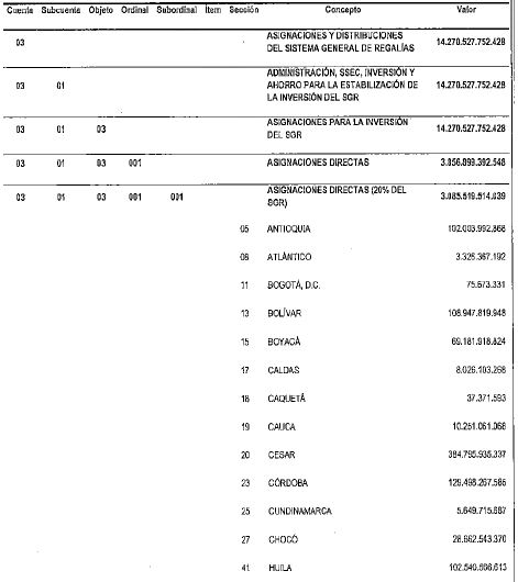 PRESUPUESTO DE GASTOS DEL SISTEMA GENERAL DE REGALIAS.