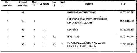 INCORPORACIÓN DE RENDIMIENTOS FINANCIEROS, EL AJUSTE DEL ADELANTO PARA LA PAZ Y MINERAL SIN IDENTIFICACIÓN DE ORIGEN.
