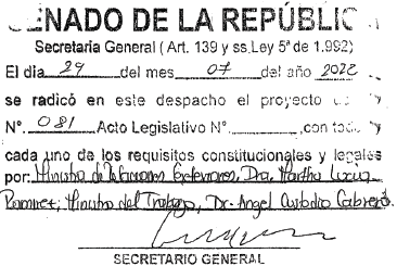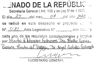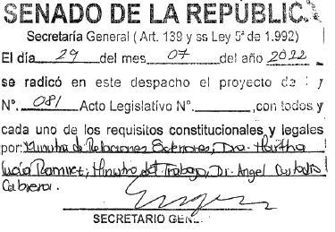Presentado al honorable Congreso de la República por la Ministra de Relaciones Exteriores y el Ministro del Trabajo.