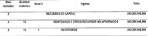 1. Incorpórese al Presupuesto de Ingresos del Sistema General de Regalías para el bienio del 1 de enero de 2025 al 31 de diciembre de 2026, la suma de doscientos cuarenta y tres mil doscientos sesenta y ocho millones ochocientos cuarenta y ocho mil quinientos sesenta y cuatro pesos ($243.268.848.564) moneda legal, correspondiente a los reintegros realizados a la Cuenta Única del Sistema General de Regalías girados en vigencias presupuestales anteriores y según la información registrada en el Sistema de Presupuesto y Giro de Regalías (SPGR) al 31 de agosto de 2024, de acuerdo con el siguiente detalle: