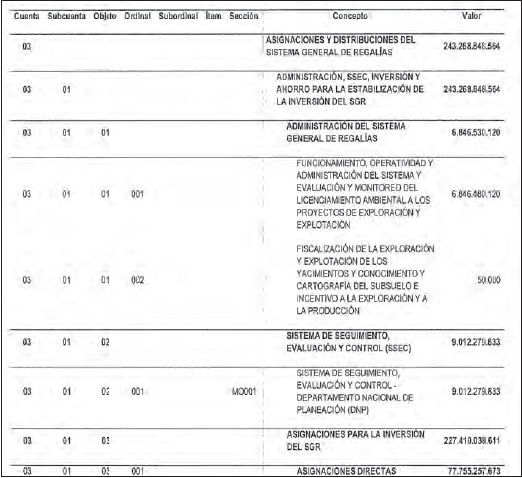 PRESUPUESTO DE GASTOS DEL SISTEMA GENERAL DE REGALÍAS.