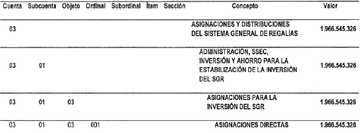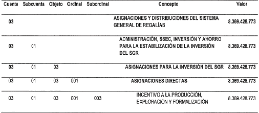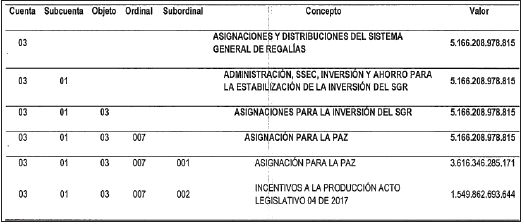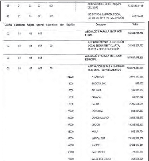 PRESUPUESTO DESTINADO A LA INVERSIÓN DEL SISTEMA GENERAL DE REGALÍAS.