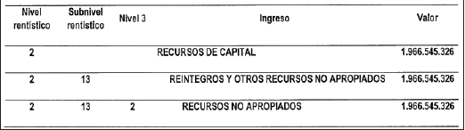 1. Incorpórese al Presupuesto de Ingresos del Sistema General de Regalías para el bienio del 1 de enero de 2025 al 31 de diciembre de 2026, la suma de mil novecientos sesenta y seis millones quinientos cuarenta y cinco mil trescientos veintiséis pesos ($1.966.545.326) moneda legal, provenientes de saldos pendientes de distribuir, causados a 31 de diciembre de 2011, por concepto de pagos de regalías sin identificación previa de entidades beneficiarias, según el siguiente detalle: