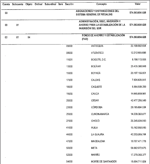 PRESUPUESTO DESTINADO AL AHORRO DEL SISTEMA GENERAL DE REGALÍAS.