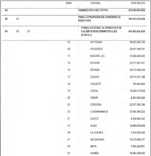PARÁGRAFO 2o. Fondo Nacional de Pensiones de las Entidades Territoriales (Fonpet). En el rubro 04-07-01, correspondiente al “Fondo Nacional de Pensiones de las Entidades Territoriales (Fonpet)”, se incorporan la totalidad de los recursos para ser girados al Fondo Nacional de Pensiones de las Entidades Territoriales (Fonpet), estimados para el bienio 2025-2026.