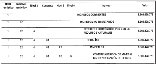 1. Incorpórese al Presupuesto de Ingresos del Sistema General de Regalías para el bienio del 1 de enero de 2025 al 31 de diciembre de 2026, la suma de ocho mil trescientos sesenta y nueve millones cuatrocientos veintiocho mil setecientos setenta y tres pesos ($8.369.428.773) moneda legal, provenientes de los recursos que fueron recaudados por la Autoridad Minera Nacional en virtud de la acreditación de pago de regalías previo a la exportación de minerales, productos o subproductos mineros de oro, plata y platino, en cumplimiento de lo establecido en la Ley 2056 de 2020, según el siguiente detalle: