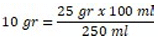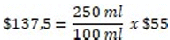 Para determinar finalmente el impuesto, se toman 250 mililitros y se dividen en 100 mililitros, el resultado se multiplica por la tarifa, así: