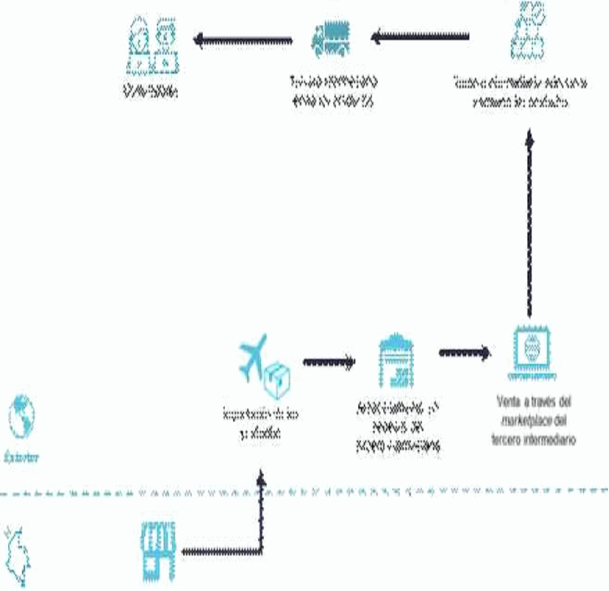 Descripción: En este modelo de negocio, el vendedor, a través del marketplace de un tercero con el que cuenta -adicionalmente- con un contrato de prestación de servicios de logística, realiza la venta de sus productos a compradores ubicados en el exterior.
