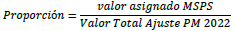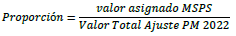 Que, en virtud de la obligación anterior y del giro de los recursos que estableció el Ministerio de Hacienda y Crédito Público, la distribución de los recursos a reconocer y girar por ajuste del presupuesto máximo de la vigencia 2022 se efectuará a las Empresas Promotoras de Salud - EPS y Entidades Adaptadas - EAS de manera proporcional en virtud de la siguiente fórmula matemática: