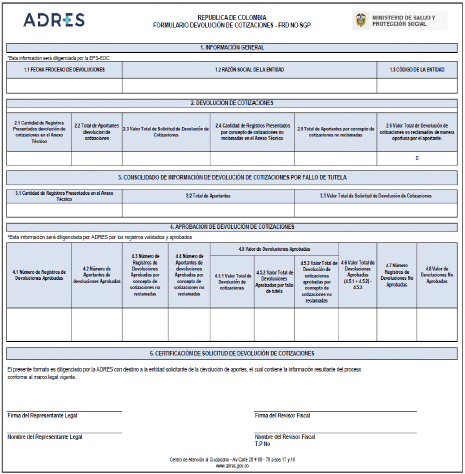 1. Formulario de devolución de cotizaciones régimen contributivo.