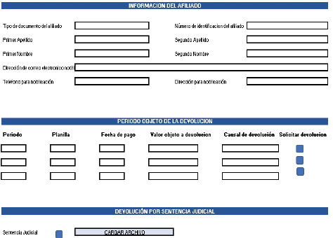 | 16 | Periodo de cotización | Corresponde al periodo objeto de la solicitud de devolución en formato (MM/AAAA). | 7 | Carácter |