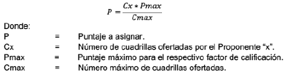 Las demás propuestas recibirán puntaje de acuerdo con la siguiente ecuación: