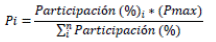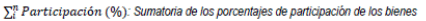 Participación (%)i: Porcentaje de participación del bien