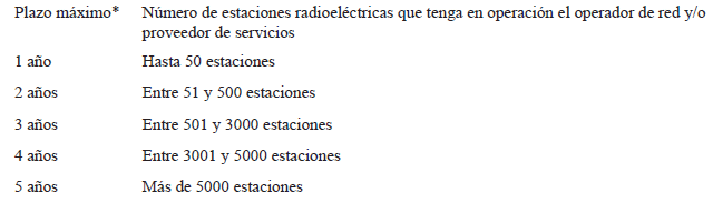 Plazos máximos según número de estaciones