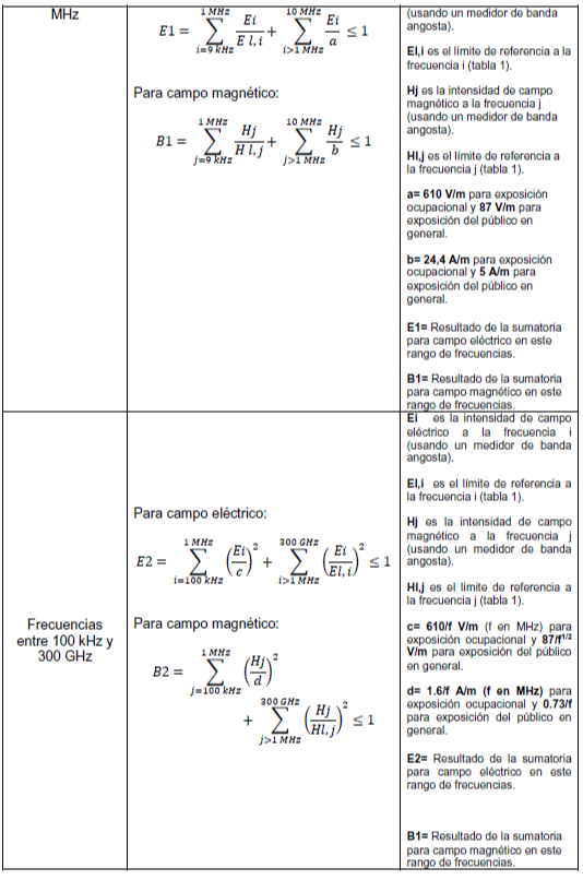 Si el resultado de la medición es menor al nivel de decisión, se considera que el sistema en evaluación cumple con los niveles de exposición a campos electromagnéticos.