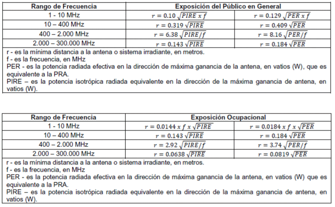 5. Para PIRE = 100W las ecuaciones 1 a 3, basadas en condiciones de campo lejano, no son válidas.