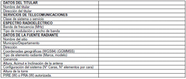 La Agencia Nacional del Espectro se reserva la facultad de verificar en cualquier momento, la información suministrada por el solicitante.