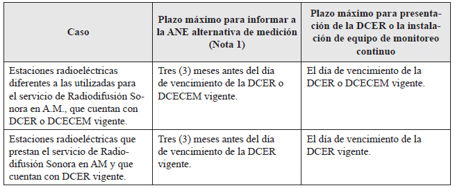 PARÁGRAFO 1o. Se podrá optar por realizar mediciones de campos electromagnéticos, sea presentando la DCER o mediante la instalación de un equipo de monitoreo continuo sin necesidad de realizar los cálculos simplificados. Los resultados de las mediciones deberán ser presentados a la ANE en los plazos estipulados en la Tabla 2 de la presente resolución.