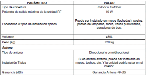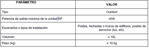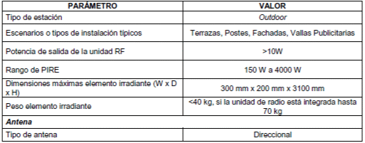 Existen elementos de transmisión y recepción que hacen parte de la infraestructura de los proveedores de redes y servicios de telecomunicaciones, los cuales, por sus características en cuanto a dimensiones y peso, así como los escenarios de despliegue típicos utilizados para su montaje, cuya estructura preexistente tales como postes, fachadas, terrazas y vallas publicitarias, entre otros, no requieren de obra civil. A continuación, se presentan las condiciones típicas que cumplen este tipo de instalaciones.
