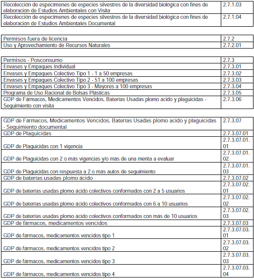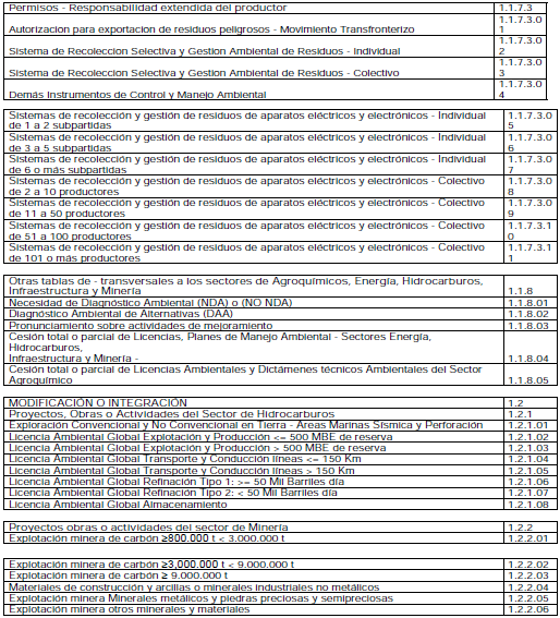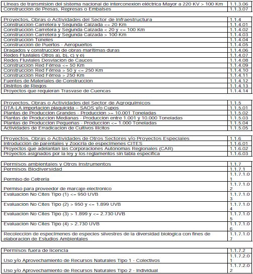 ARTÍCULO 2o. SERVICIOS PRESTADOS POR LA AUTORIDAD NACIONAL DE LICENCIAS AMBIENTALES (ANLA). Los servicios que presta la Autoridad Nacional de Licencias Ambientales (ANLA), corresponden a los siguientes trámites: