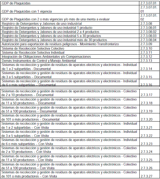 TARIFAS POR EL SERVICIO DE EVALUACIÓN -MODIFICACIÓN, INTEGRACIÓN Y CESIÓN- DE LOS INSTRUMENTOS DE CONTROL Y MANEJO AMBIENTAL.
