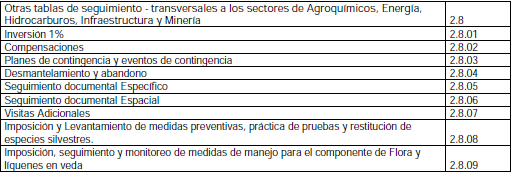 1. Control y seguimiento de instrumentos de manejo y control ambiental –licencias ambientales, planes de manejo, permisos, concesiones, autorizaciones ambientales, entre otros-.