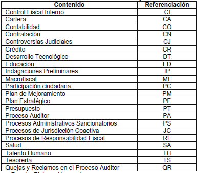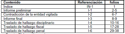 La documentación que contiene el archivo corriente de ejecución se identificará con las siguientes referenciaciones de acuerdo al proceso evaluado: