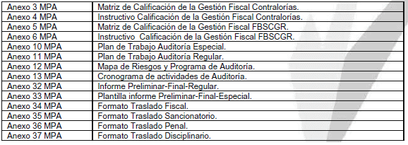 Que mediante Resolución Orgánica número 003 del 6 de marzo del 2017, se adoptó el Manual del Proceso Auditor MPA versión 8.0, estableciendo en parágrafo del artículo 4o: “La modificación de alguno de los 43 documentos anexos del Manual por constituir modelos y plantillas de uso y mejora permanente y por no implicar modificación del Manual, podrá hacerla el líder del proceso, sólo mediante correo electrónico a la Oficina de Planeación remitiendo el nuevo anexo, con copia a la Dirección de Control Fiscal y a las Gerencias Seccionales”.
